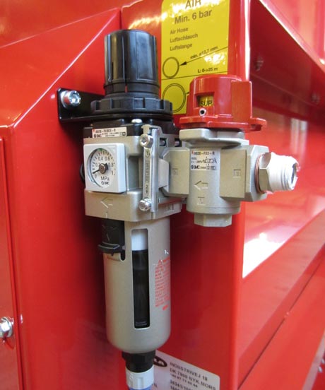 Avstängningsventilen möjliggör avstängning från lufttillförseln direkt på maskinen.