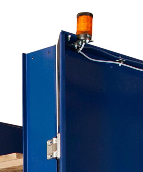 En varningslampa ger signal när pallstapeln är full.