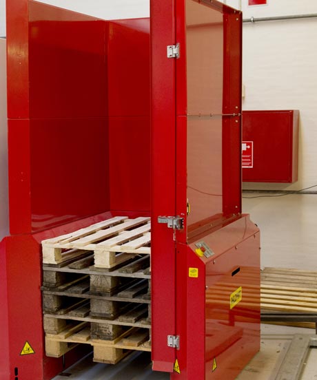 Plockning: Två staplar med högst 15 pallar sätts in i Palomaten, varefter pallarna automatiskt ställs ner 1 + 1, två i en linje.